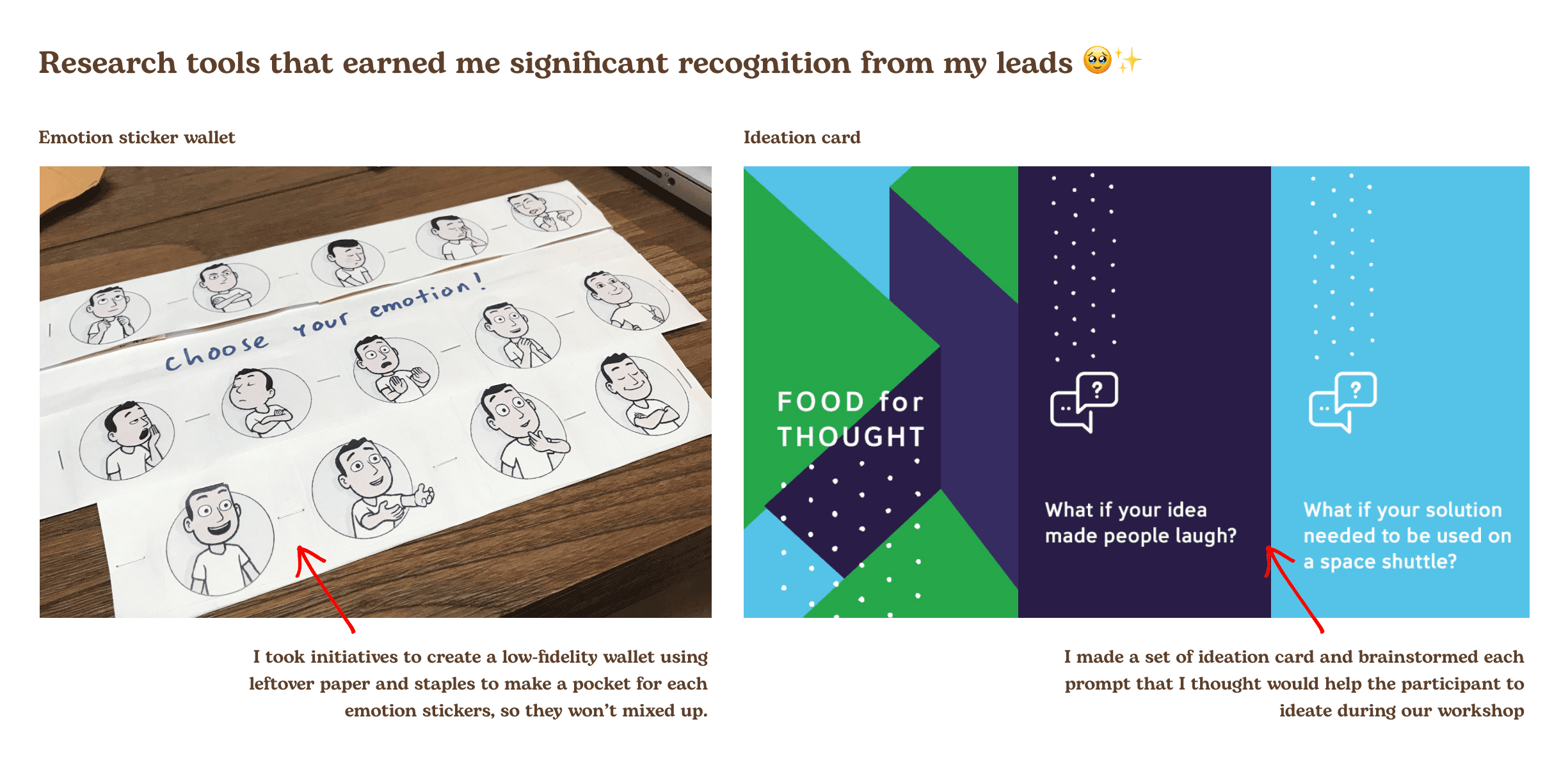 In order to better capture their sentiments towards the whole experience, we created some research tools to help the interviewee articulate their thoughts and feelings.