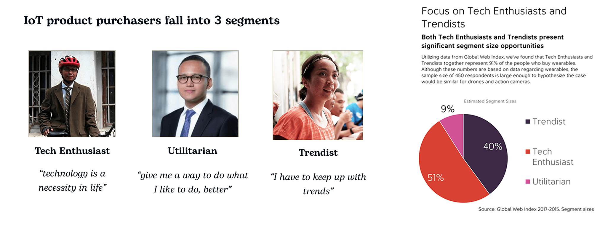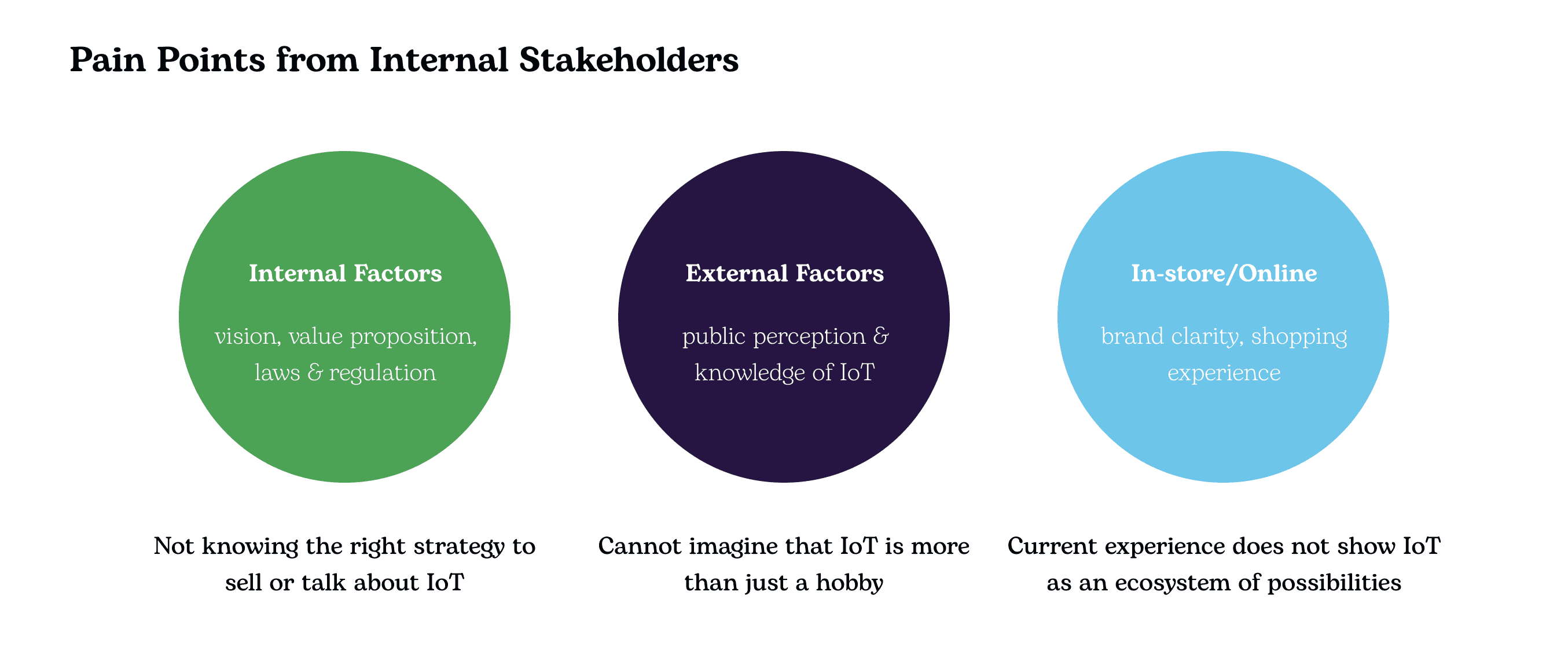 This project revolves around the concept of the Internet of Things (IoT), which includes any internet-connected device, from cellphones to wearable devices. As the cost of connectivity decreases, our client sees a significant growth opportunity in distributing and selling IoT products. However, because the range of IoT products varies significantly in purpose, there are many different audience segments that our client needs to cater to. Using current channels might be challenging, as consumers currently have little regard for their present retailers because these stores are perceived as focused on mobile phones.